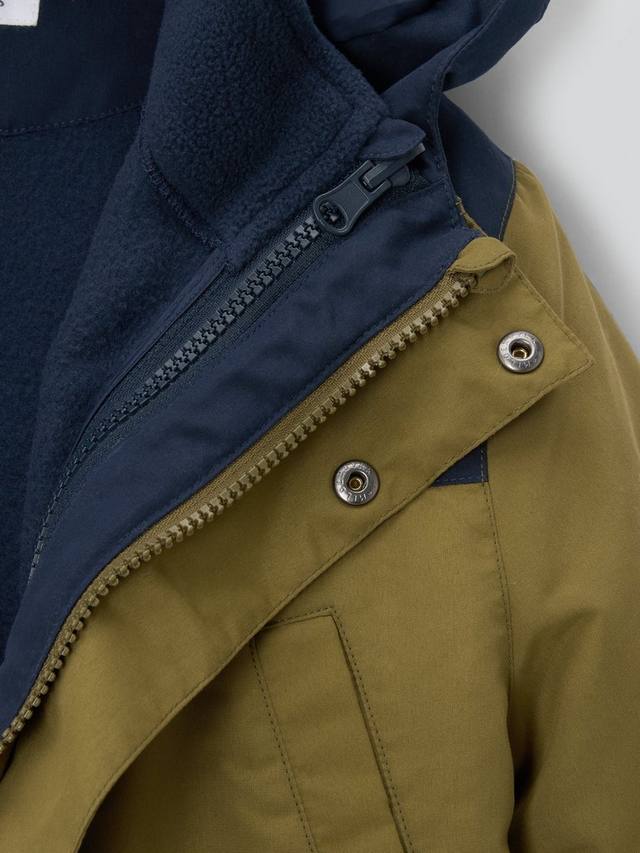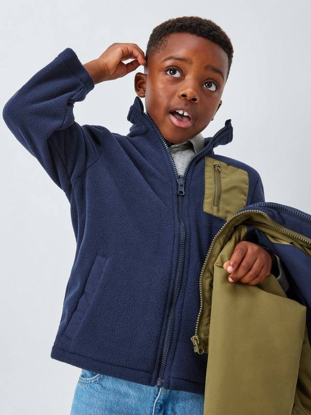 Куртка 2 в 1 — идеальный вариант для постоянно меняющейся погоды! Водонепроницаемая внешняя куртка имеет классическую застежку-молнию и капюшон с контрастными вставками, а внутренняя куртка выполнена из уютного микрофлиса с застежкой-молнией.