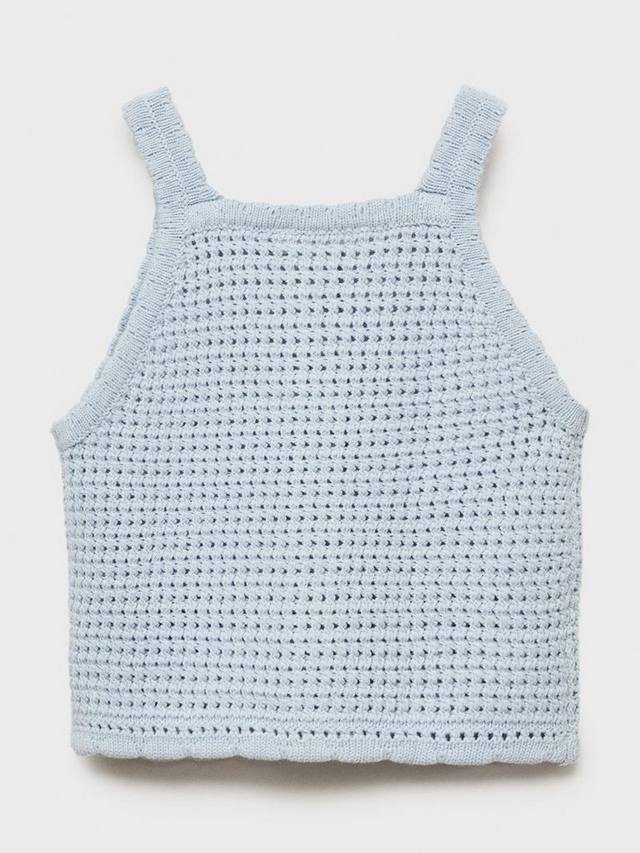 Этот топ от Mango, связанный крючком, выполнен из 100% хлопка с фестончатой окантовкой и застежкой на пуговицы спереди.