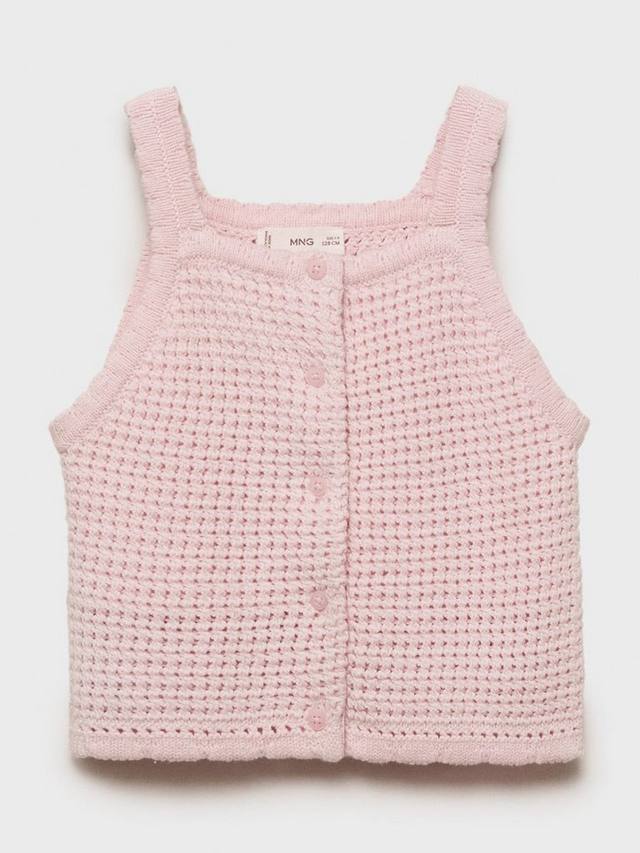Этот топ от Mango, связанный крючком, выполнен из 100% хлопка с фестончатой окантовкой и застежкой на пуговицы спереди.