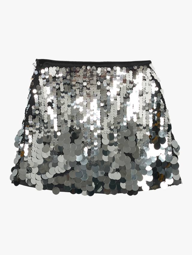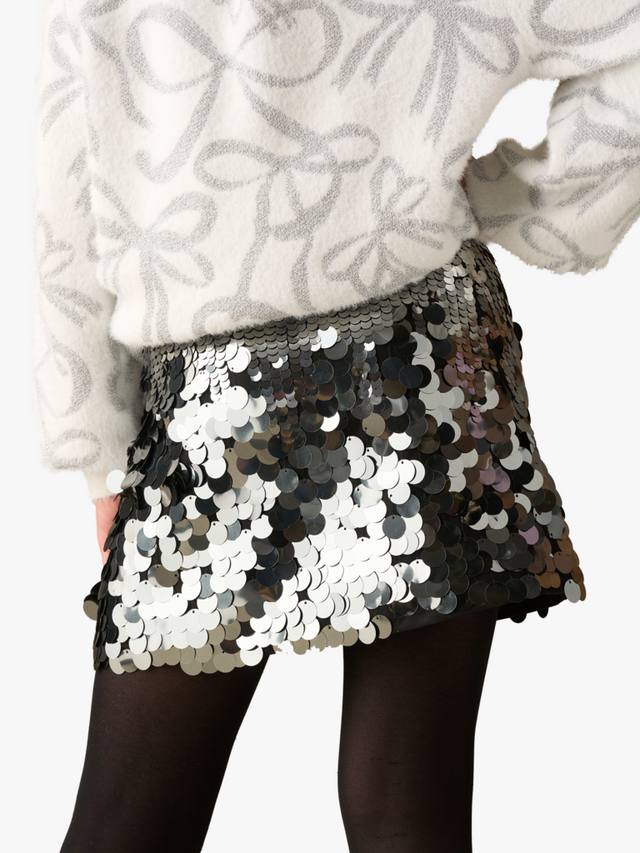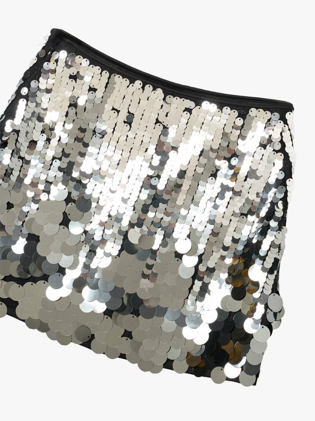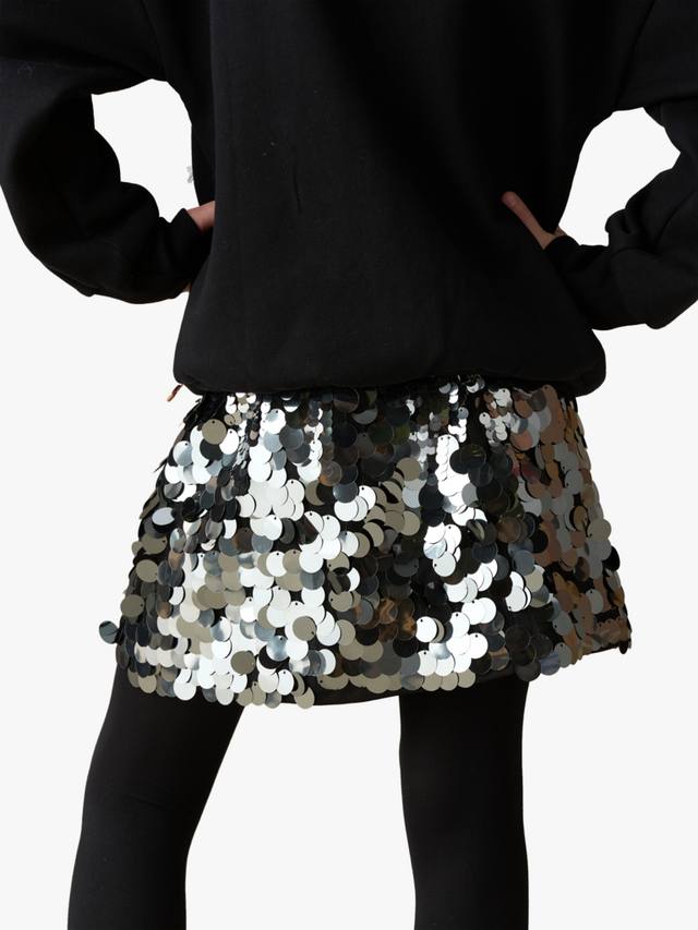 Не нужен диско-шар на их следующей вечеринке: эта новая юбка с пайетками будет мерцать и сиять всю ночь. Юбка А-силуэта с потрясающим сочетанием пайеток разного размера застегивается на незаметную молнию сбоку. Вступите в сезон вечеринок стильно.