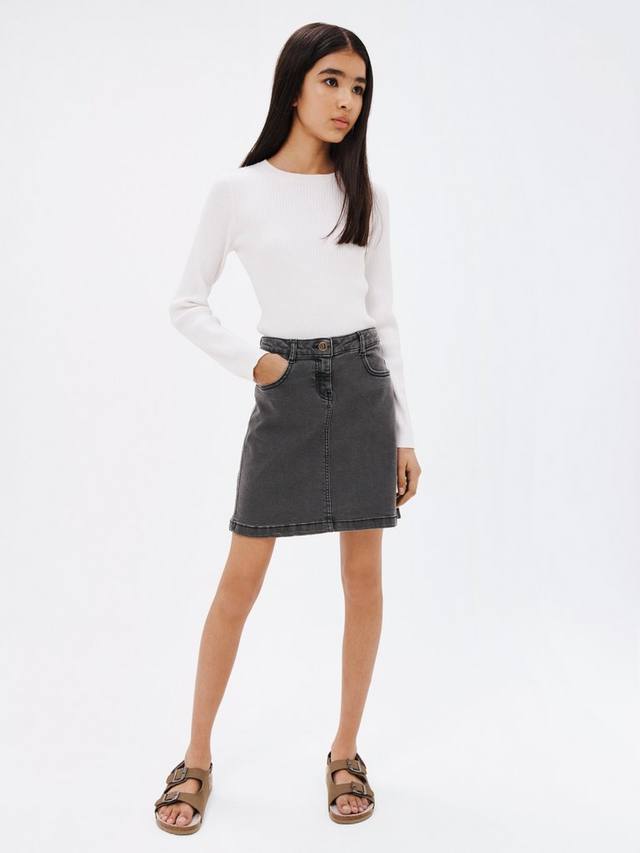 Эта юбка, которая будет стильной вещью в любом возрасте, выполнена из чистого хлопкового денима с классическим пятикарманным кроем.