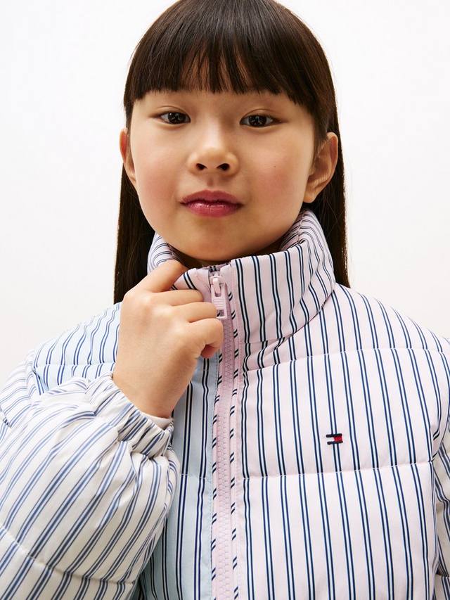 Эта стеганая куртка от Tommy Hilfiger выделяется ярким дизайном в полоску, а воротник-стойка и мягкая подкладка сохраняют тепло. Куртка имеет воротник-стойку, молнию спереди, боковые карманы, эластичные манжеты и фирменный логотип бренда на груди.