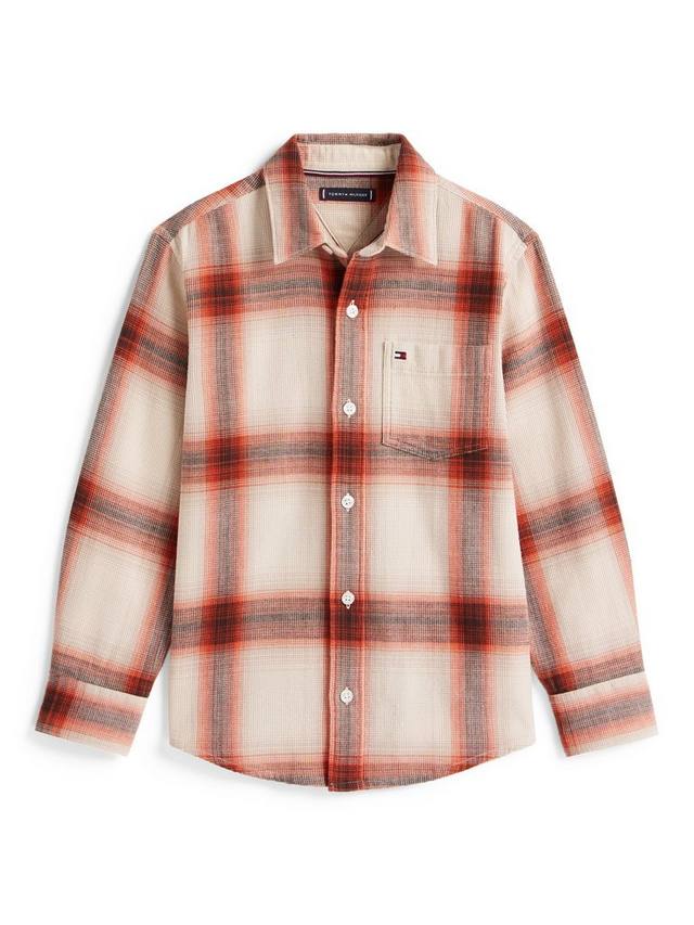Детская рубашка в рубчик с текстурой вафли Tommy Hilfiger, Voyager Orange