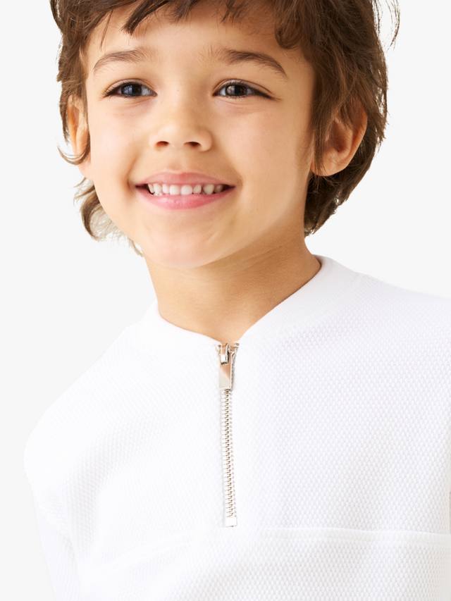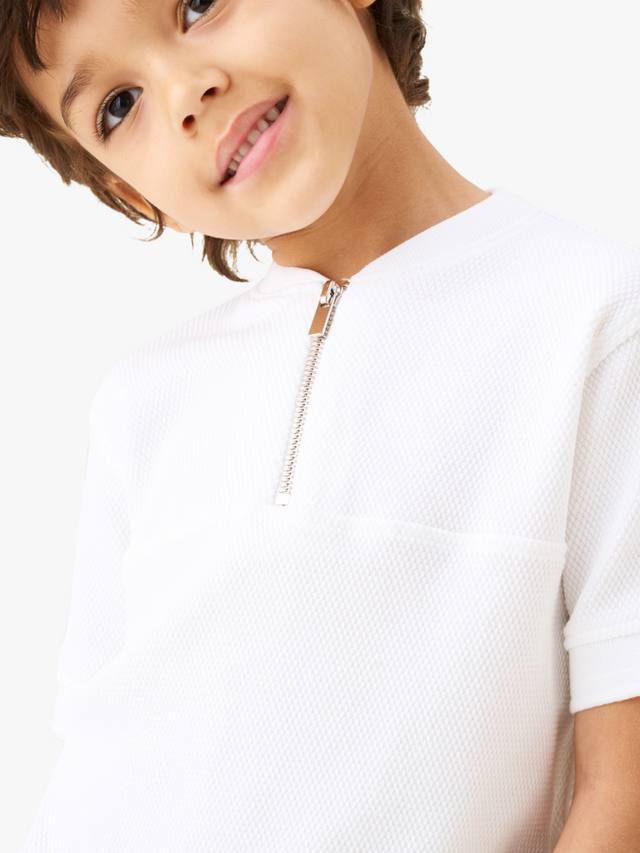 Стиль смарт-кэжуал в новом облике. Эта белоснежная рубашка-поло с фактурной вязкой и застежкой-молнией спереди дополнена фирменной фурнитурой, придающей ей фирменный стиль. Идеально сочетается с вашими любимыми джинсами или брюками чинос.