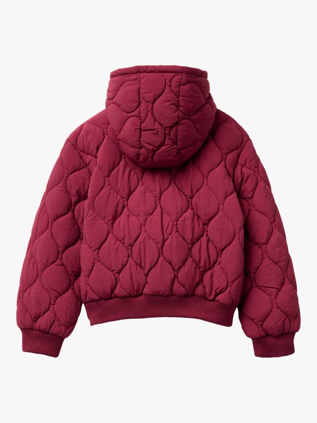 Согрейте их и создайте стильный образ в этой стеганой куртке с капюшоном из нейлона с эффектом крепа, ребристыми манжетами, застежкой-молнией по всей длине и элегантной вышивкой.
