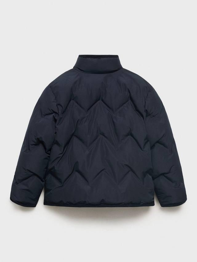 Эта куртка Mango, изготовленная из стеганой, водонепроницаемой ткани и прямого кроя, имеет круглую высокую горловину, длинные рукава, застежку-молнию спереди и два боковых кармана.