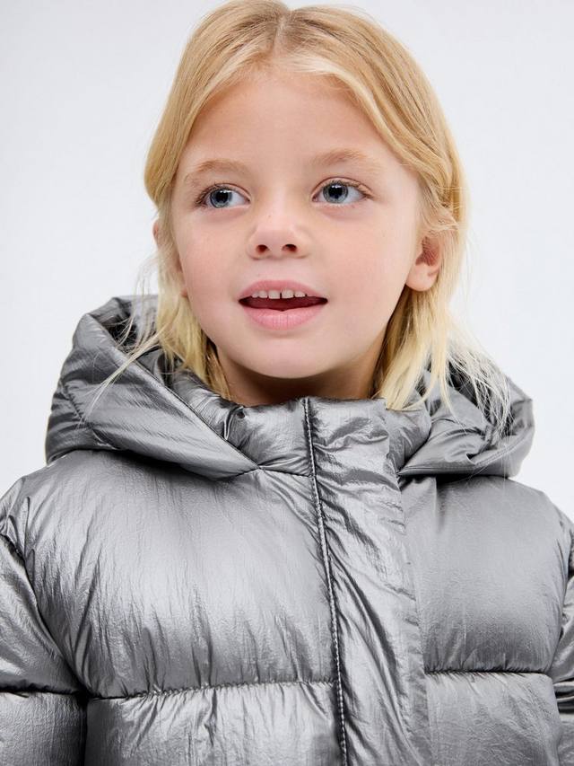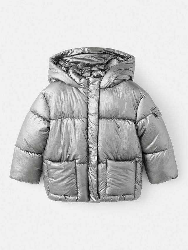 Эта стеганая куртка с металлическим отливом идеально подходит для приключений на свежем воздухе. Она согреет малышей благодаря пристегивающемуся капюшону и застежке-молнии. Два передних кармана для всего необходимого.