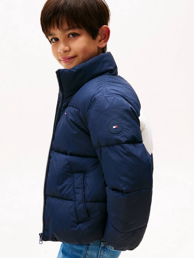Будьте готовы к холодам с этой практичной стеганой курткой. Утеплённый дизайн с ярким фирменным флагом на спине. Высокий воротник, двойная молния, два прорезных кармана и фирменный логотип Tommy Hilfiger. Свободный крой.