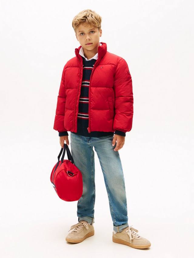 Будьте готовы к холодам с этой практичной стеганой курткой. Утеплённый дизайн с ярким фирменным флагом на спине. Высокий воротник, двойная молния, два прорезных кармана и фирменный логотип Tommy Hilfiger. Свободный крой.