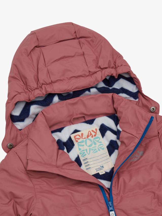 Эта стеганая куртка от Muddy Puddles обеспечивает оптимальное тепло, не добавляя объёма, благодаря инновационной технологии утепления без перьев. Воздухопроницаемость до 3000 г/м² и водонепроницаемость до 10 000 мм гарантируют малышам комфорт и сухость в любую погоду. Особенности: съёмный капюшон с подкладкой из флиса, светоотражающие элементы на бегунках молний для лучшей видимости и надёжные карманы для хранения собранных сокровищ.