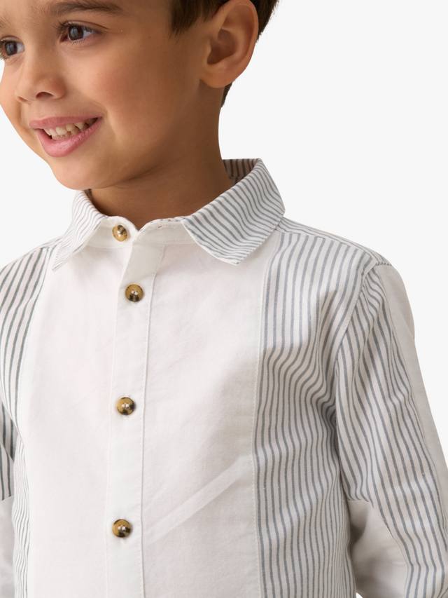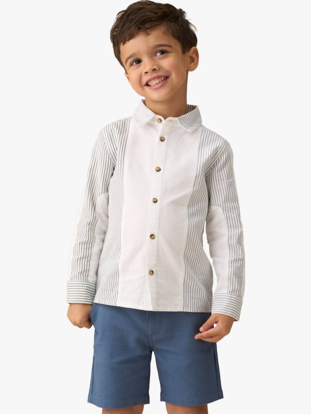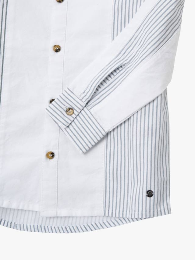 Новый подход к элегантному стилю A&R! Эта рубашка с цветными блоками — свежий взгляд на классику: комбинированные ткани с белыми и синими полосками. Идеально подходит для любого случая, легко сочетая элегантный и повседневный стиль, создавая стильный, но при этом сдержанный образ.