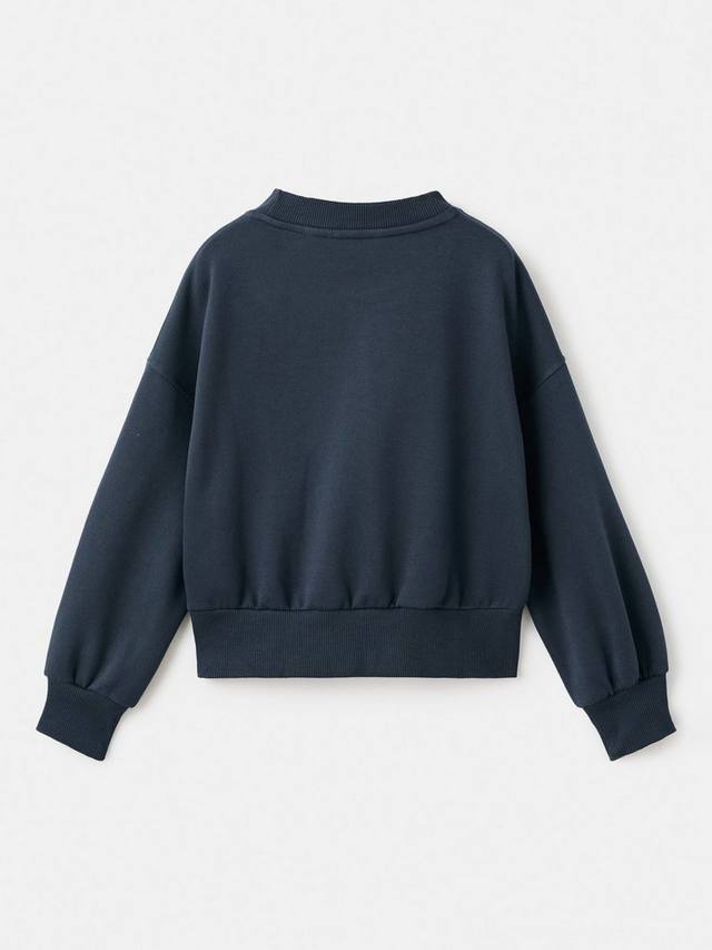Эта толстовка из приятной на ощупь хлопковой ткани имеет классический прямой крой с круглым вырезом и длинными рукавами. Ребристые манжеты, воротник и подол обеспечивают комфортную посадку, а вышитый рисунок спереди добавляет игривости.