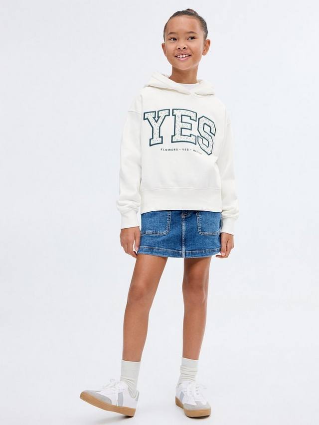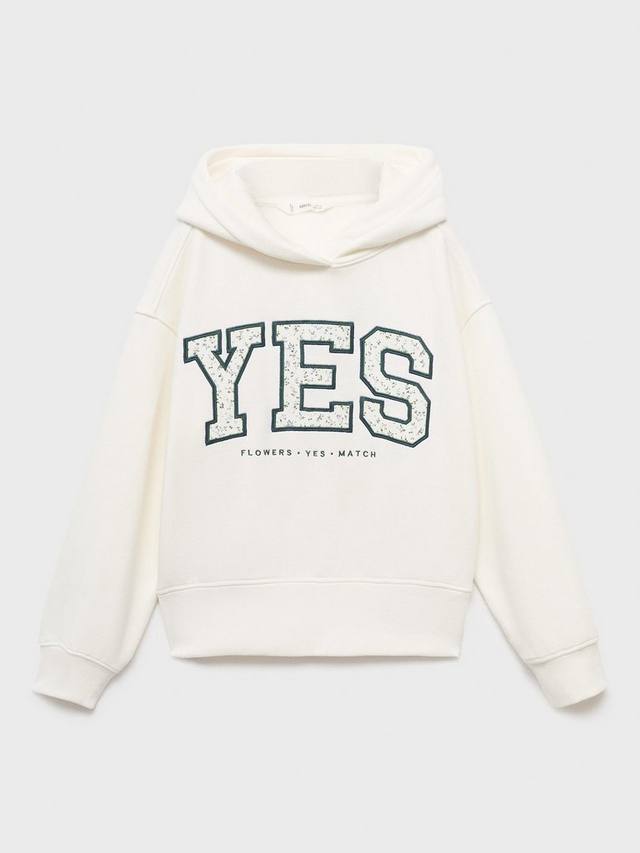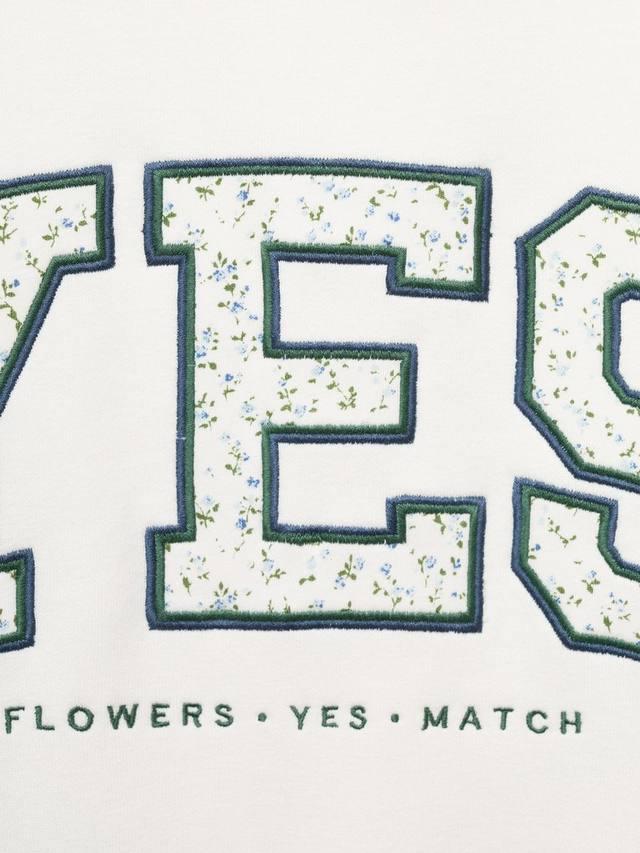 Свитшот с вышитым дизайном Да, цветочными деталями, капюшоном и контрастными ребристыми манжетами и подолом.