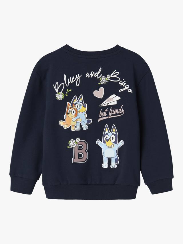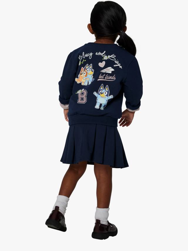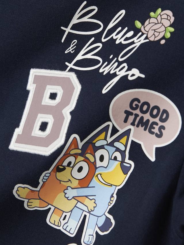 Эта толстовка из начесанного эластичного хлопка с мягкой внутренней стороной для комфорта имеет стандартный крой и классический круглый вырез горловины, длинные рукава, ребристые манжеты и принт Bluey спереди.