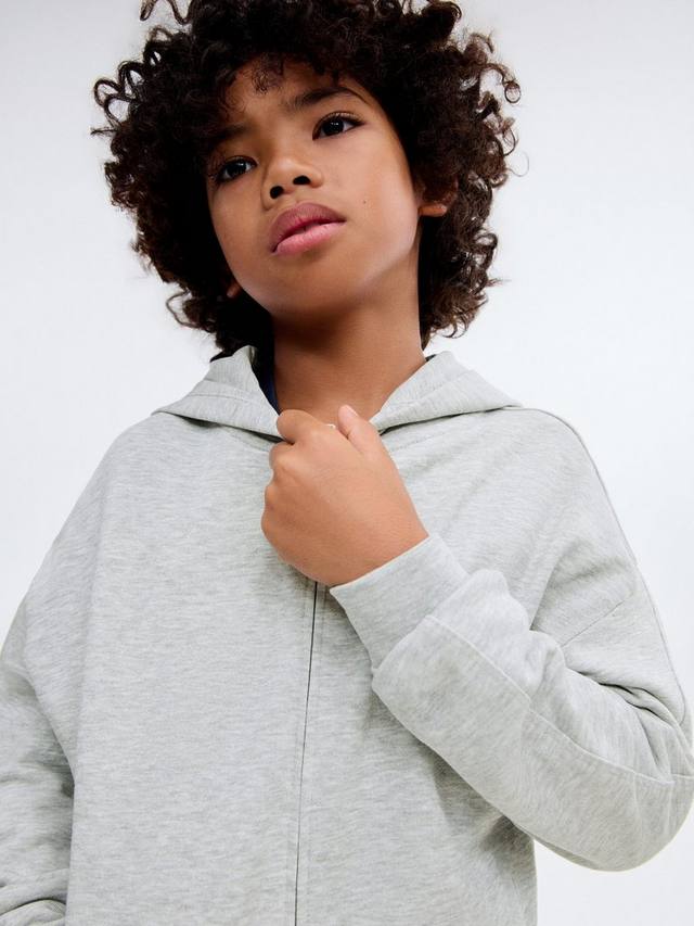 Эта универсальная толстовка с капюшоном из приятной хлопковой ткани идеально подходит для многослойного повседневного ношения. Длинные рукава, застежка-молния спереди и боковые карманы.