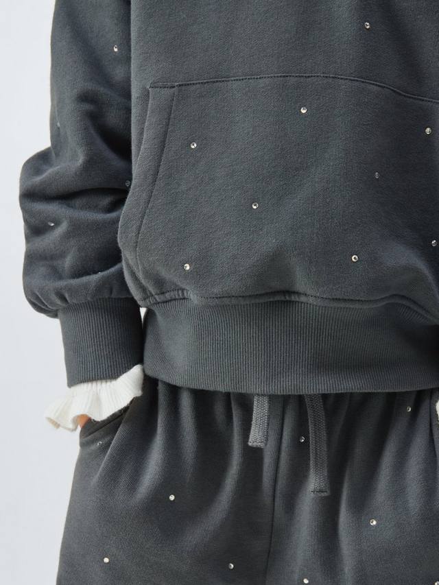 Обновление классического трикотажного худи с капюшоном, украшенное стразами.
