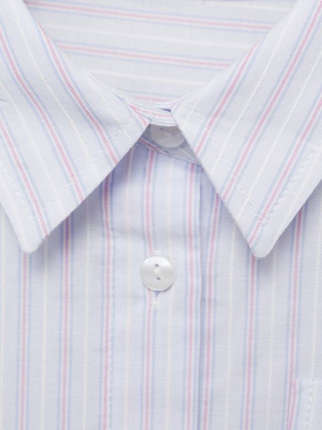 Эта рубашка от Mango, выполненная из мягкого хлопка укороченного кроя, имеет воротник рубашечного типа, длинные рукава с манжетами на пуговицах и полосы по всей поверхности.
