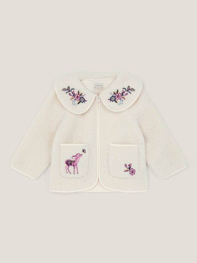 Подарите им уют и комфорт в этой уютной кофте из флиса борг. Она застегивается на простую молнию и украшена вышивкой с милым оленёнком и яркими цветочными мотивами на воротнике и накладных карманах.