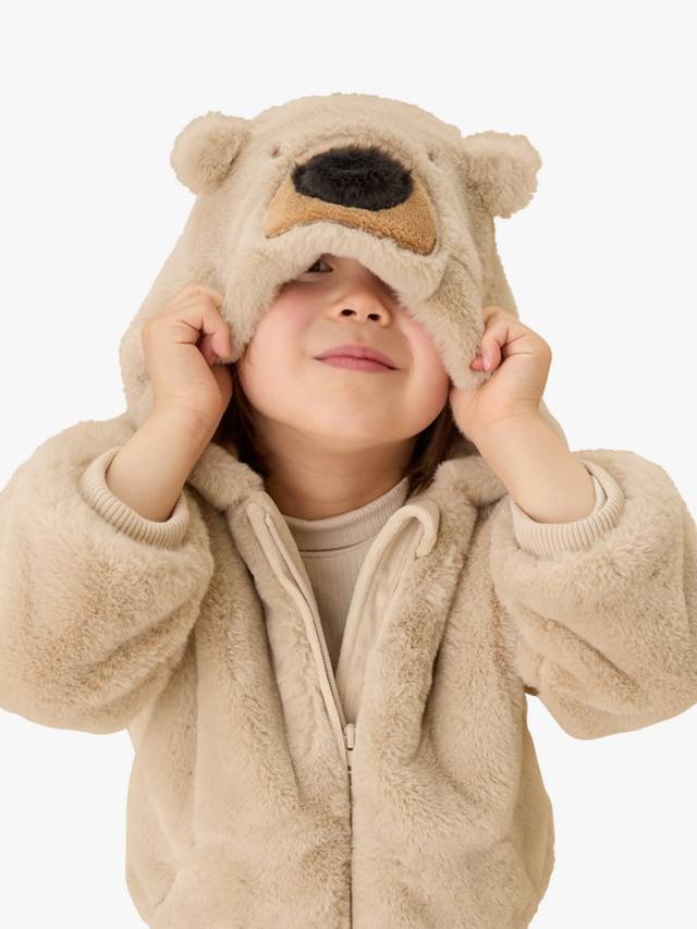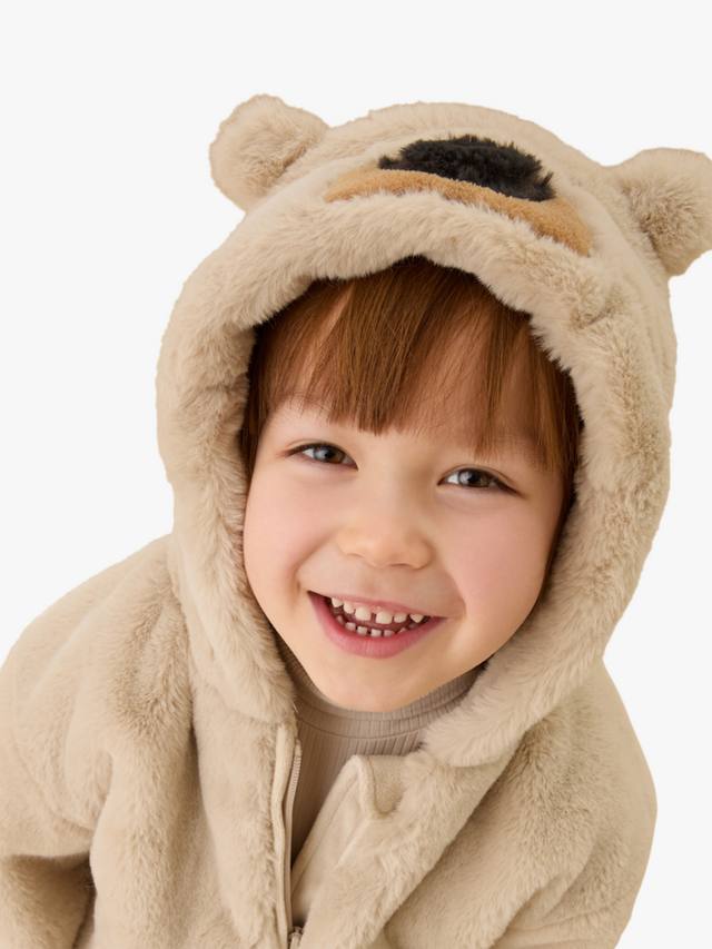 Эта куртка из искусственного меха с изображением медведя — идеальное теплое зимнее изделие. Она подбита супермягким флисом и быстро застегивается на молнию. Оригинальный дизайн с изображением медведя на капюшоне делает куртку особенно милой. Эластичные манжеты и подол, а также внутренние ремешки на кнопках на манжетах позволяют закрепить варежки.