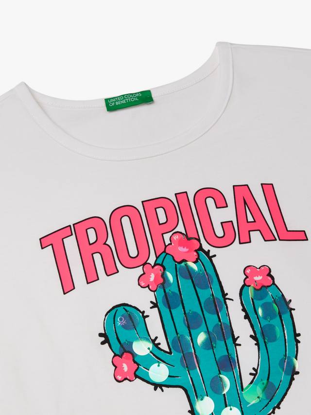Футболка премиум-класса с ярким принтом спереди и изящной вышивкой пайетками.