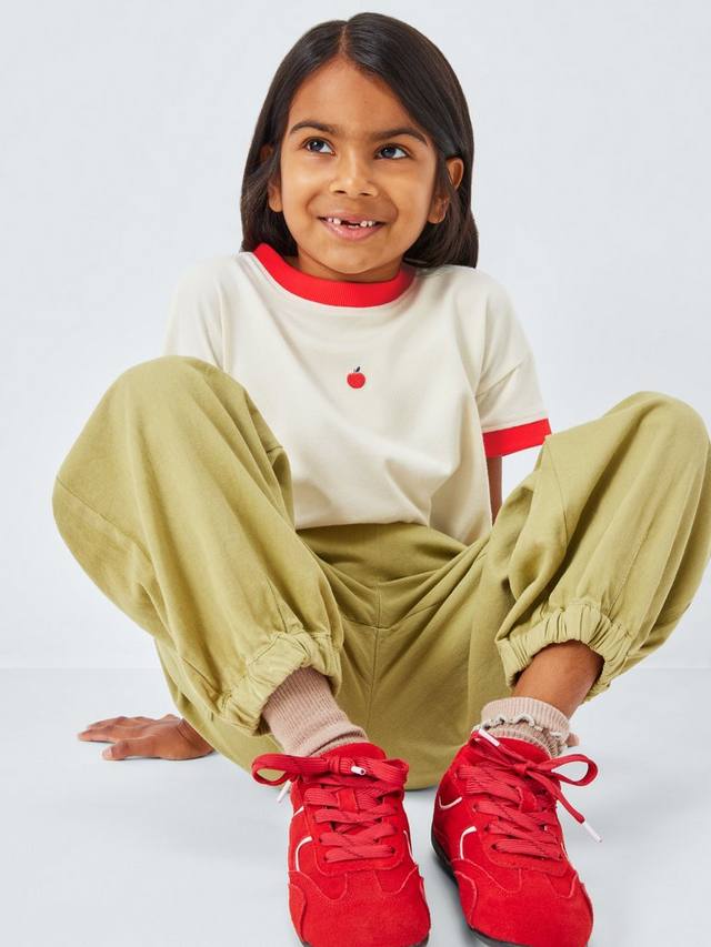 Эта футболка из чистого хлопка — идеальный выбор для комбинирования и сочетания, она дополнена контрастной цветной отделкой и изображением яблок.