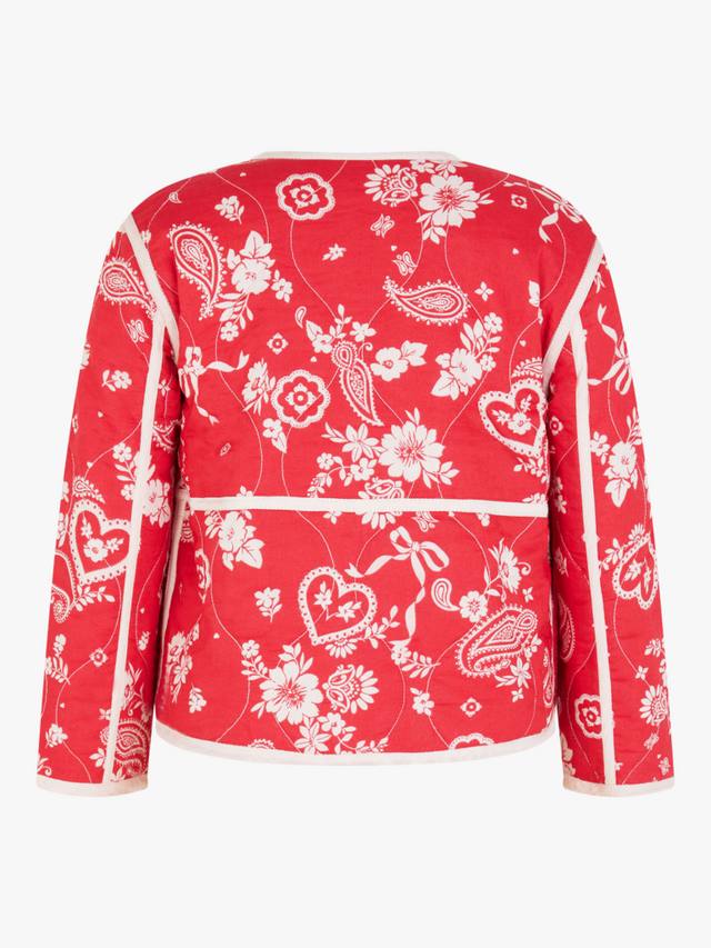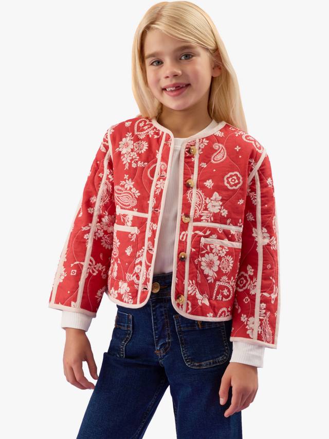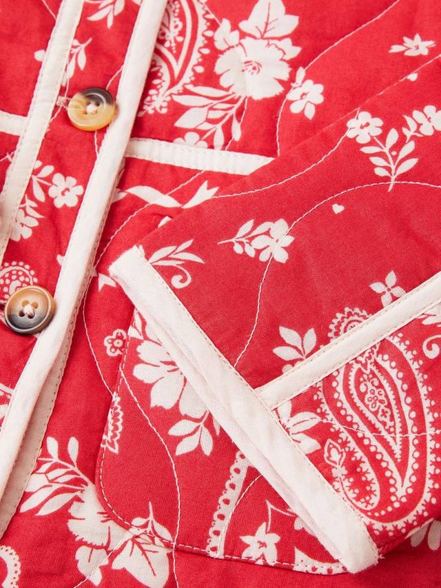 Игривая вещь для вашей маленькой модницы, которая идеально дополнит любой выходной наряд. Изготовлена из хлопка ярко-красного цвета с цветочными, сердечными и пейсли-узорами и мягкой стёганой строчкой. Спереди застёгивается на пуговицы и имеет накладные карманы.