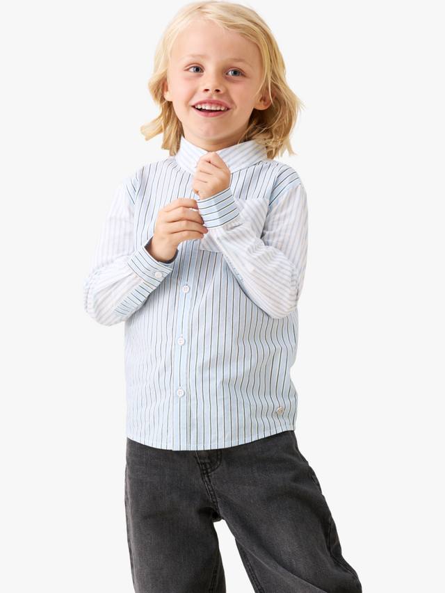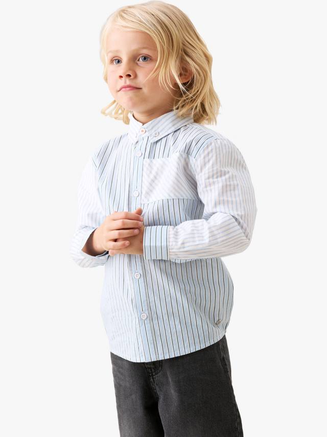 Эта классическая рубашка на пуговицах, выполненная из выкроенных и пришитых полос, дополнена фирменной фурнитурой и вышитым логотипом.