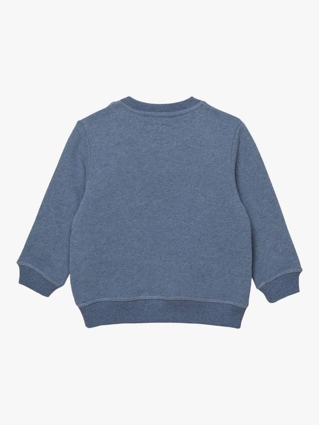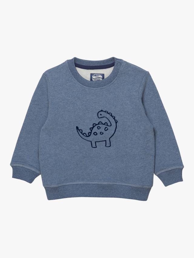 Эта стильная и удобная толстовка из меланжевого денима синего цвета с более непринужденным видом и изюминкой. Эта хлопковая модель дополнена милой темно-синей аппликацией с ворсом в виде динозавра Диппи спереди и по центру, отделкой Dorito на вырезе и мягкой ворсистой подкладкой. Идеально подходит для повседневной носки.