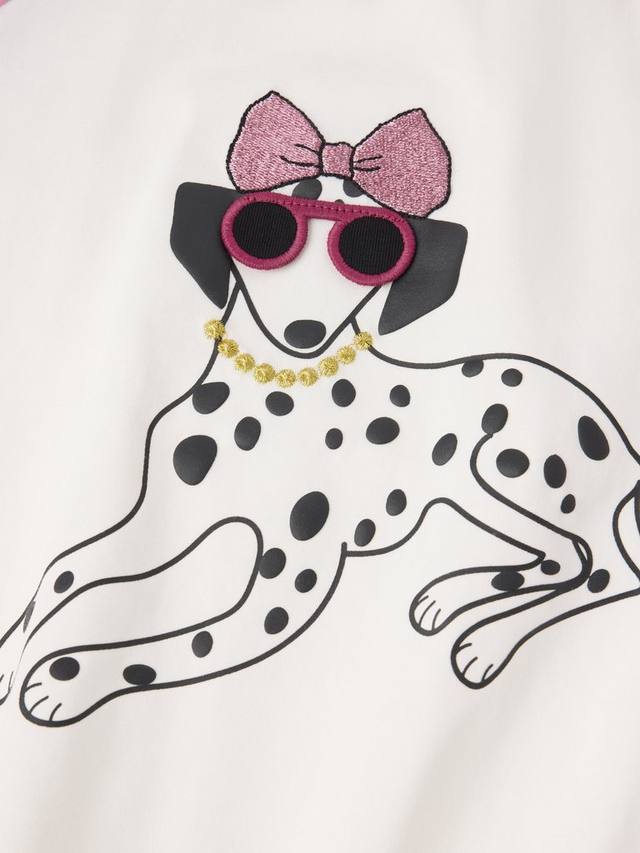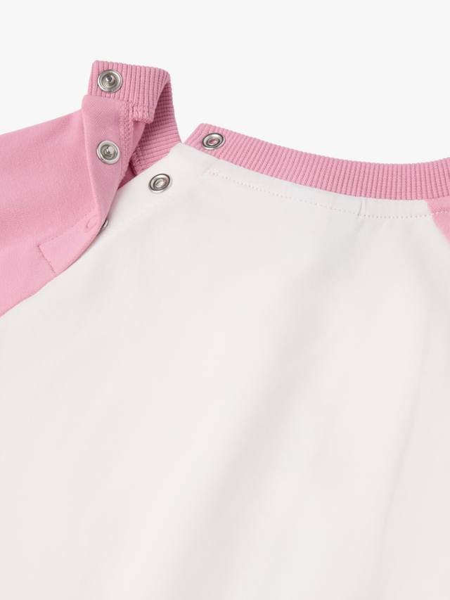 Свитшот с цветными блоками из 100% хлопка с забавным принтом на груди. Меньшие размеры застегиваются на кнопки на одном плече для удобства надевания.