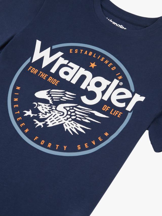 Взлетайте ввысь с этой классической футболкой Wrangler. Изготовленная из невероятно мягкого персикового хлопка, она невероятно удобная. Яркое изображение орла и логотипа – дань уважения гордому американскому наследию Wrangler с 1947 года. Эта футболка, воплощающая дух приключений, идеально подходит для юных исследователей.