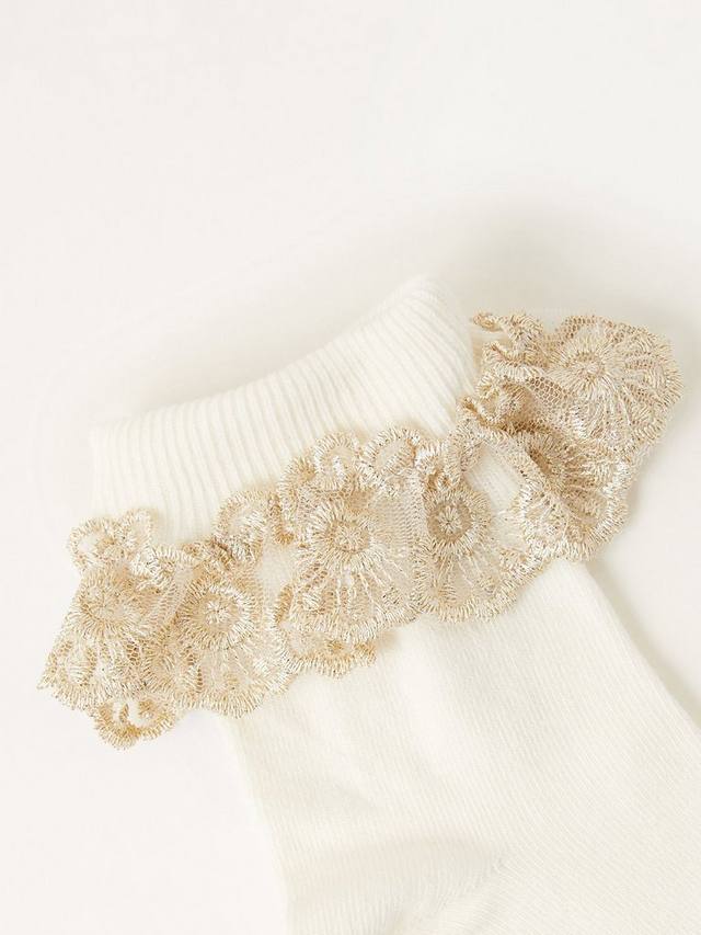 Это не просто пара носков. Они украшены блестящей оборкой, которая делает их более нарядными, и изготовлены из мягкой хлопковой смеси.
