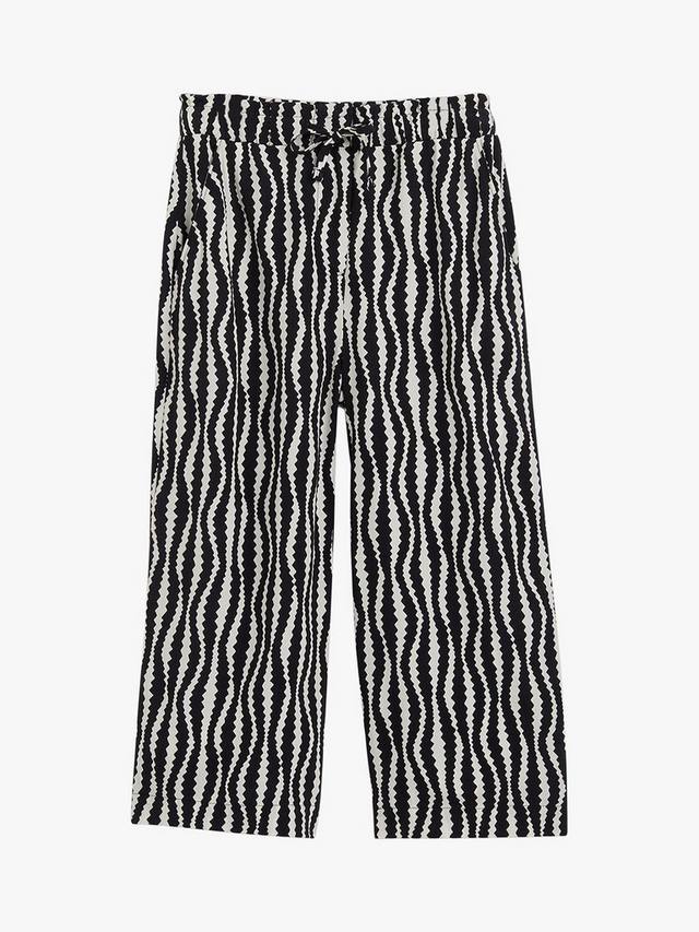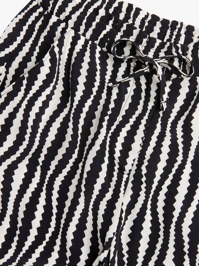 Изготовлены из легкой жатой ткани с кулиской на талии и украшены абстрактным рисунком.