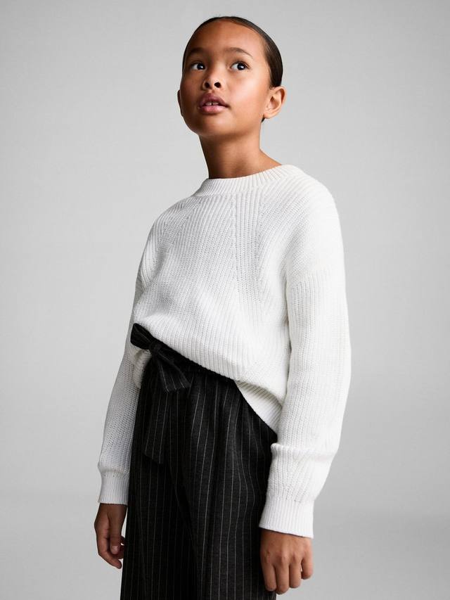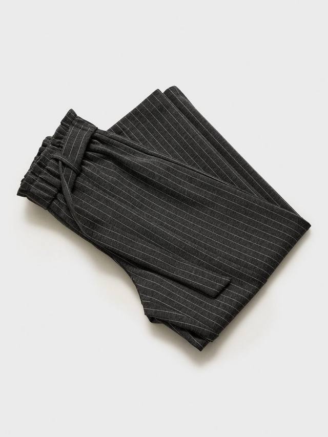 Эти брюки от Mango с широким кроем, с эластичным поясом на талии, сшиты из смесовой ткани в полоску.