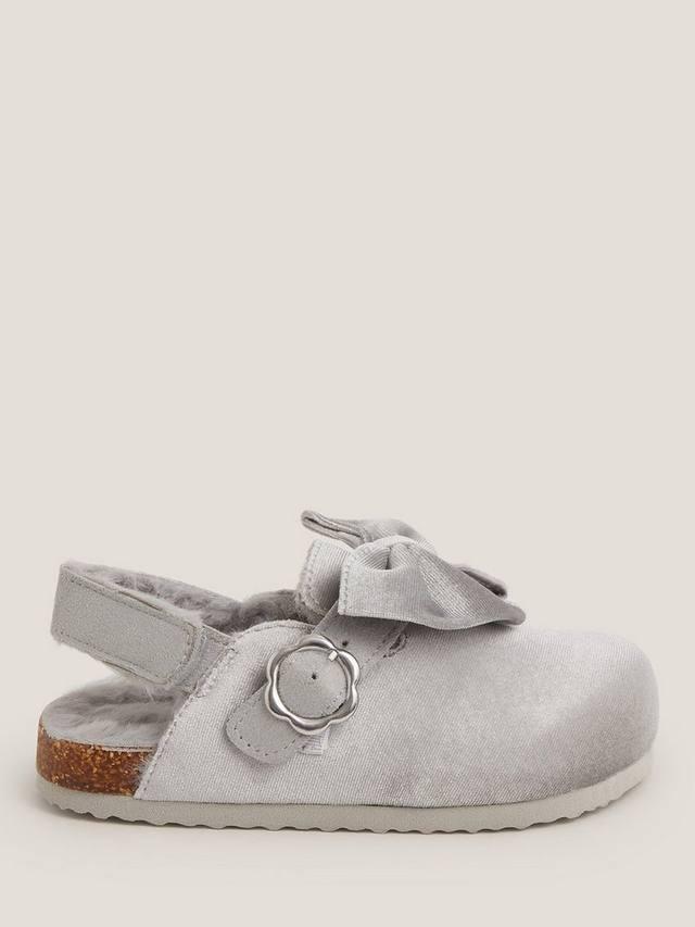 Эти мягкие велюровые сабо сочетают в себе комфорт и стиль. Они выполнены на невероятно пушистой подкладке, украшены большим бантом спереди и застежкой-липучкой на пятке.
