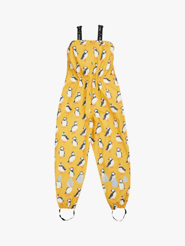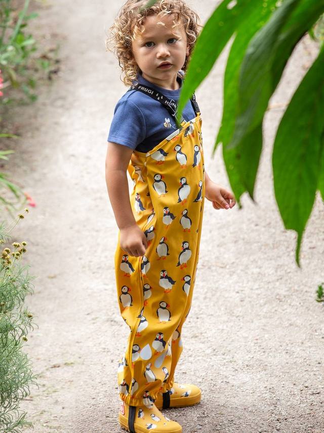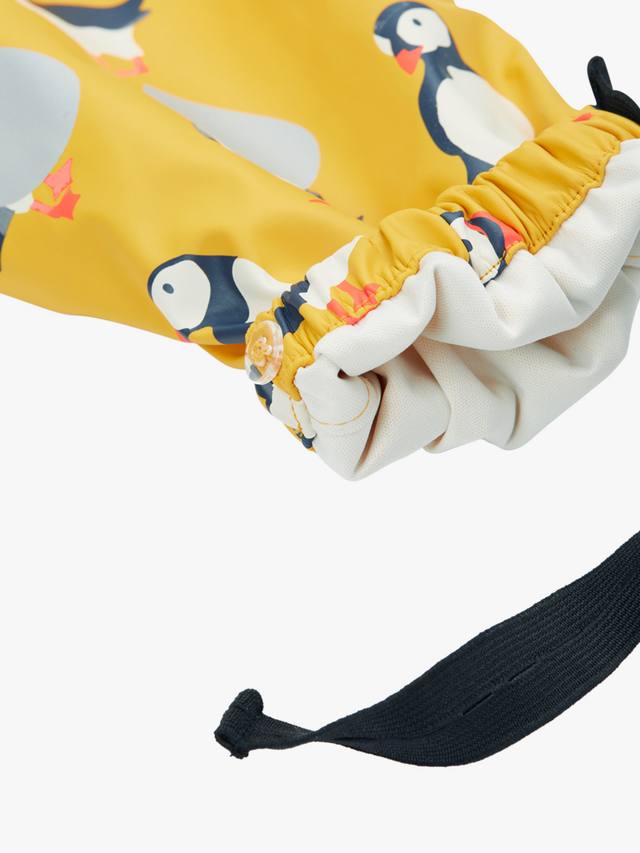 Водонепроницаемые брюки-комбинезон со сварными швами. Эластичные лямки с застежками-клипсами, эластичные штрипки и светоотражающий принт для безопасности.