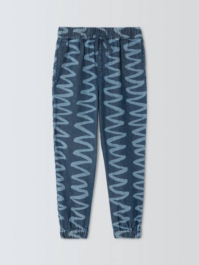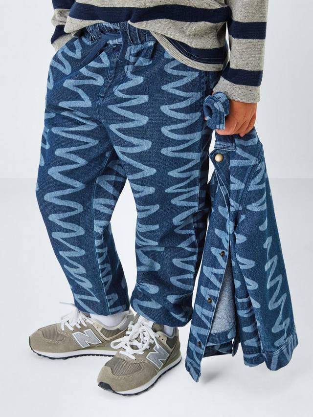Эти брюки из чистого хлопкового денима с привлекательным узором из волнистых линий зауженного кроя имеют эластичный пояс.