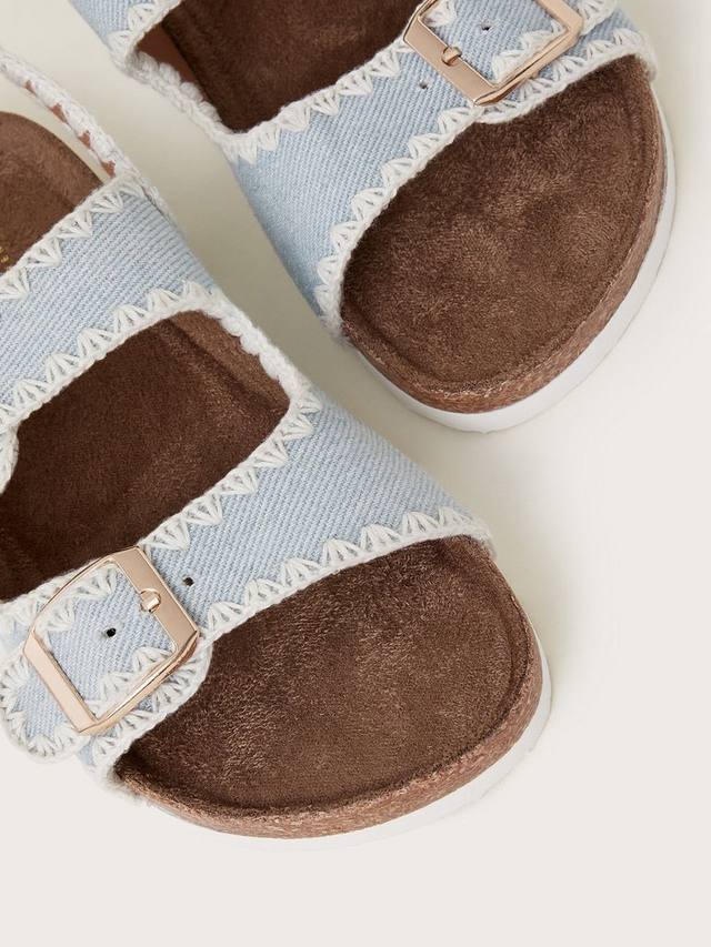 Прогулка по солнечному свету... Ух-ты! Эти сандалии из денима с декоративной отделкой обметочный шов дополнены двумя золотистыми ремешками с пряжками и застежкой-липучкой вокруг пятки.