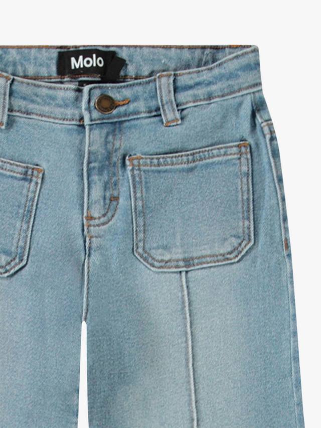 Джинсы цвета деним, выполненные из органического хлопка в стиле 70-х, с простроченной стрелкой спереди, создающей винтажный эффект. Застежка на кнопку и молнию, шлевки для ремня и внутренняя регулируемая пуговица на талии обеспечивают идеальную посадку. Они имеют воронкообразный силуэт и накладные карманы спереди, дополняющие ретро-стиль.