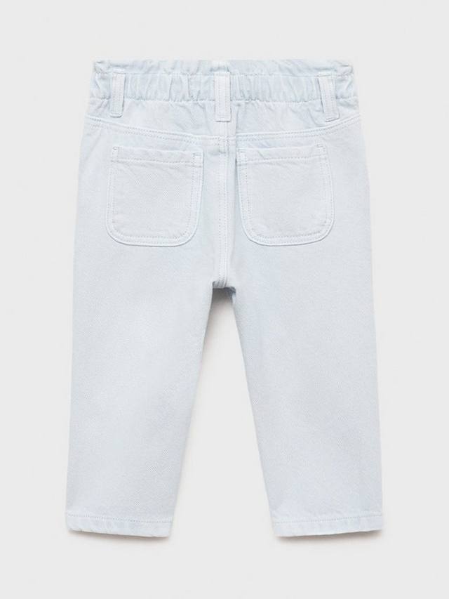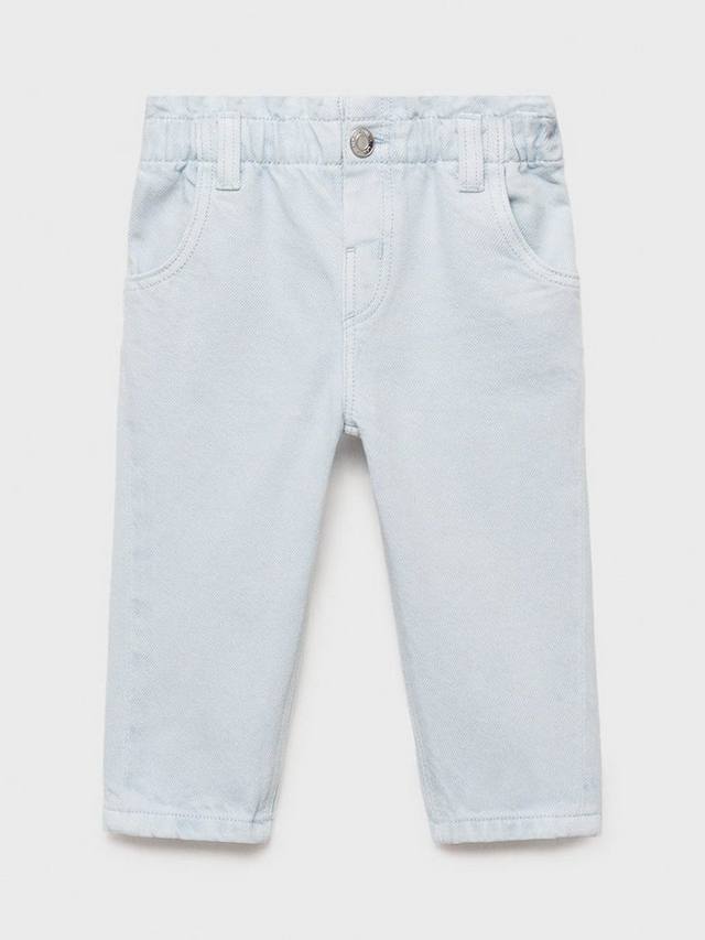 Джинсы из хлопчатобумажной ткани в стиле деним, с удобным эластичным поясом. Два боковых кармана, два накладных кармана сзади, шлевки для ремня и застежка на одну пуговицу.