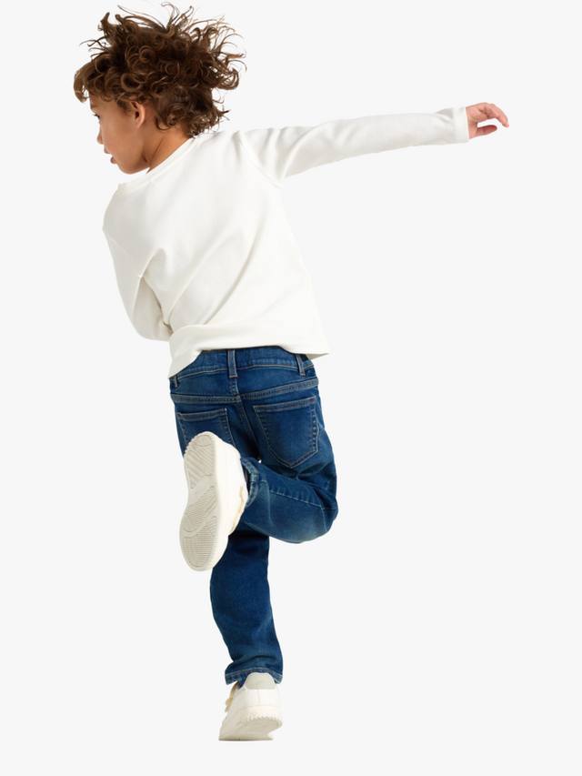 Эта пара эластичных джинсов с подтяжкой, выполненных из мягкой хлопковой смеси, имеет прямые штанины и регулируемую резинку на талии.