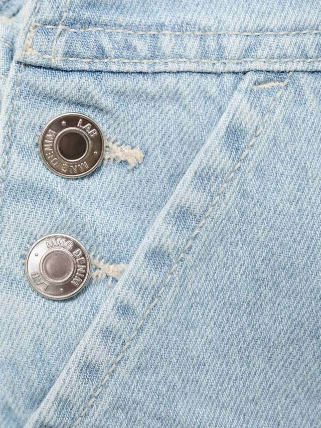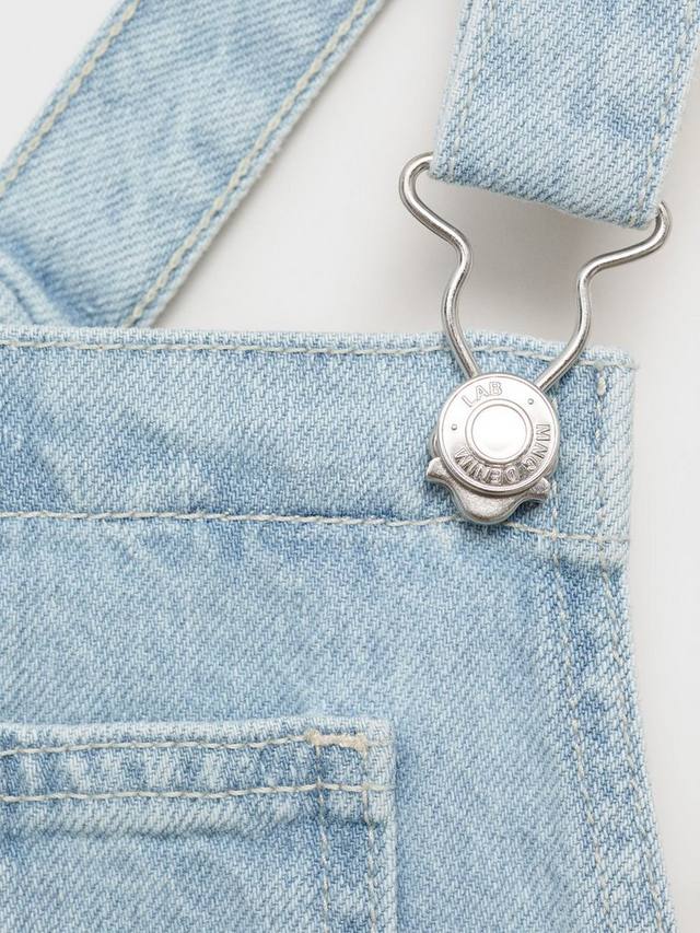 Хлопковый комбинезон в стиле деним, укороченный, с перекрещивающимися лямками и различными карманами.