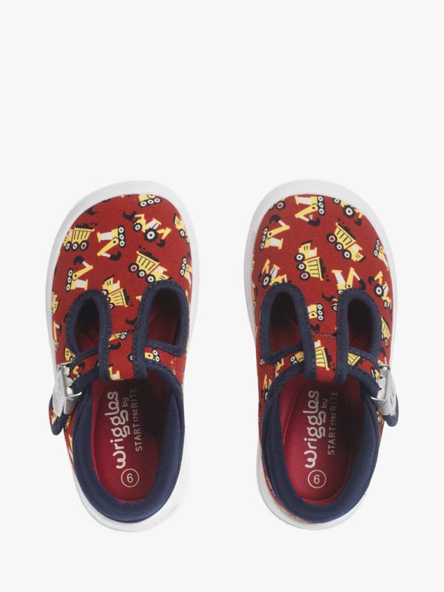 Туфли Wriggle T-bar, одобренные для игр с детьми, — это повседневная обувь для маленьких ножек. Они лёгкие, их можно стирать в стиральной машине, и они разработаны с учётом роста ножек. Красная парусиновая ткань с жёлтыми циферблатами обязательно понравится малышам.