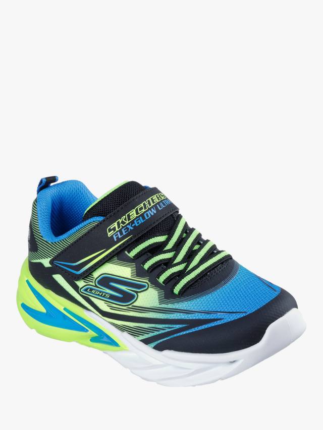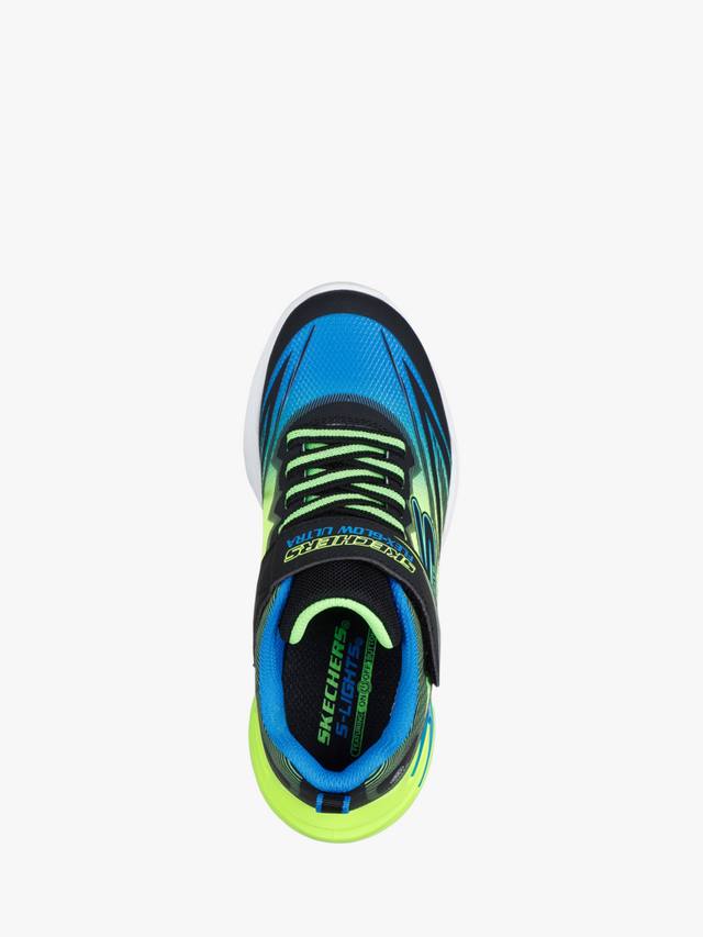 Оживите свой день яркими кроссовками Skechers S-Lights Flex-Glow Ultra. Эти яркие кроссовки отличаются сетчатым верхом с эффектом омбре и синтетическими накладками, фиксированными эластичными шнурками и адаптивной застежкой, а также технологичной светящейся промежуточной подошвой.