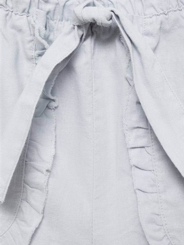 Эти шорты от Mango с эластичной талией на завязке изготовлены из смеси льна и хлопка с оборками.