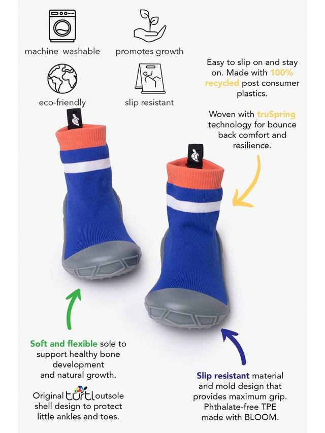 Для походов в парк или домашних игровых вечеринок, игровые туфли Turtl Play Shoes — это проверенная временем обувь для улицы и дома. Эти лёгкие, легко надеваемые носки имеют нескользящую защитную оболочку, которая не сковывает движений и поддерживает маленькие ножки.