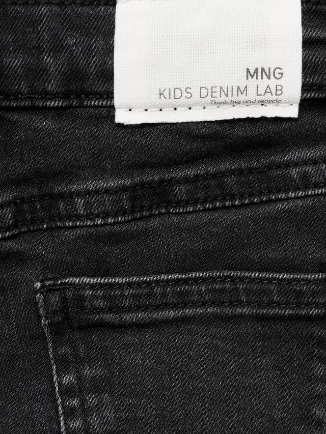 Эти джинсы из мягкого хлопка с лёгкой эластичностью имеют расклешённый крой, шлёвки для ремня, застёжку на пуговицы, два передних кармана и два накладных кармана сзади. Края обработаны необработанным краем.