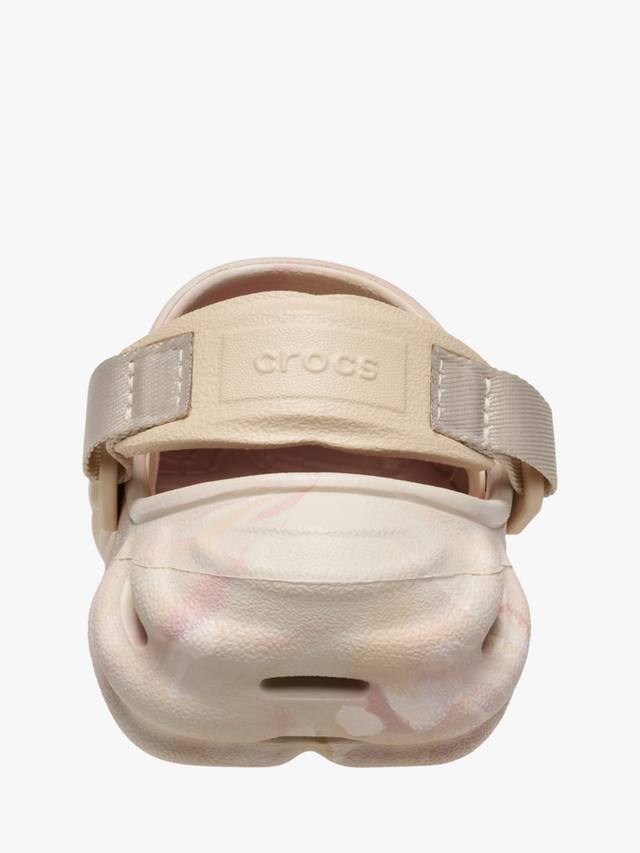Мраморный эффект, уникальный для каждой пары кроссовок. Невероятно лёгкие и удобные. Полностью литые верх и основание изготовлены из материала Croslite. Водонепроницаемые и плавучие; вес всего унции. Вентиляционные отверстия обеспечивают воздухопроницаемость и способствуют отводу воды. Легко моются и быстро сохнут. Подкладка на пятке на ремешке сзади для дополнительного комфорта.