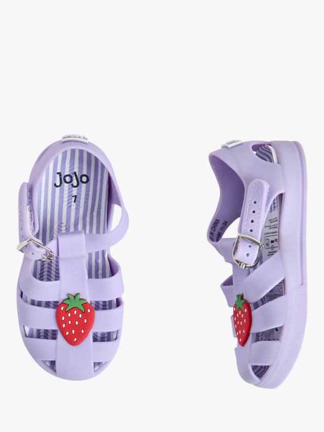 Эти сандалии из желеобразной ткани созданы для загара и купания в море благодаря сетчатой конструкции, которая обеспечивает воздухопроницаемость и защиту. Регулируемый ремешок с пряжкой обеспечивает максимальный комфорт маленьким пальчикам, а эффектные 3D-клубнички делают эти сандалии идеальным дополнением к любому летнему образу.