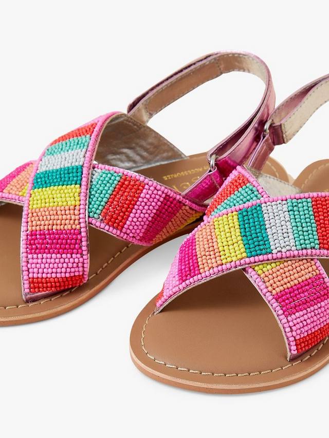 Идеально подходят для летнего образа. Эти босоножки из искусственной кожи с перекрещивающимися ремешками украшены мелкими бусинами и дополнены металлическим ремешком-липучкой вокруг щиколотки.