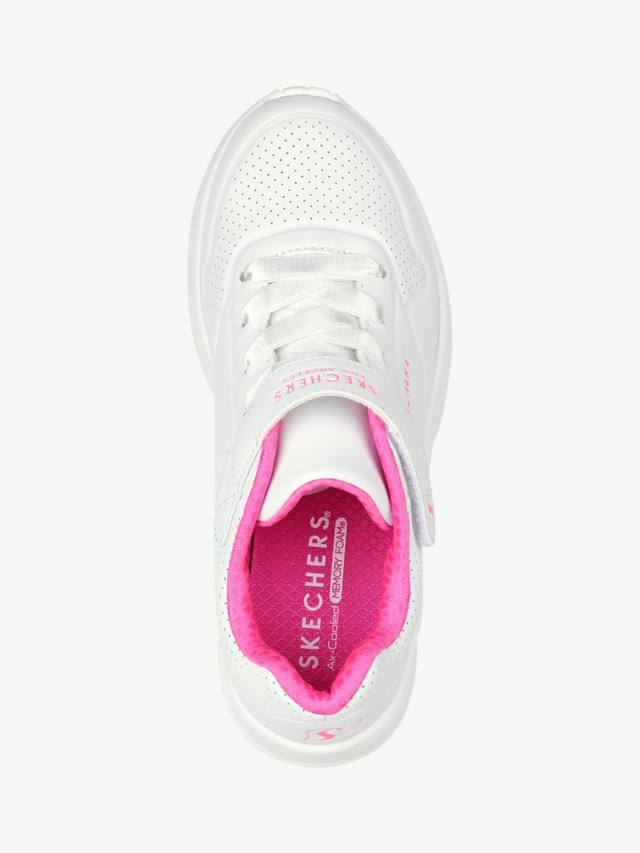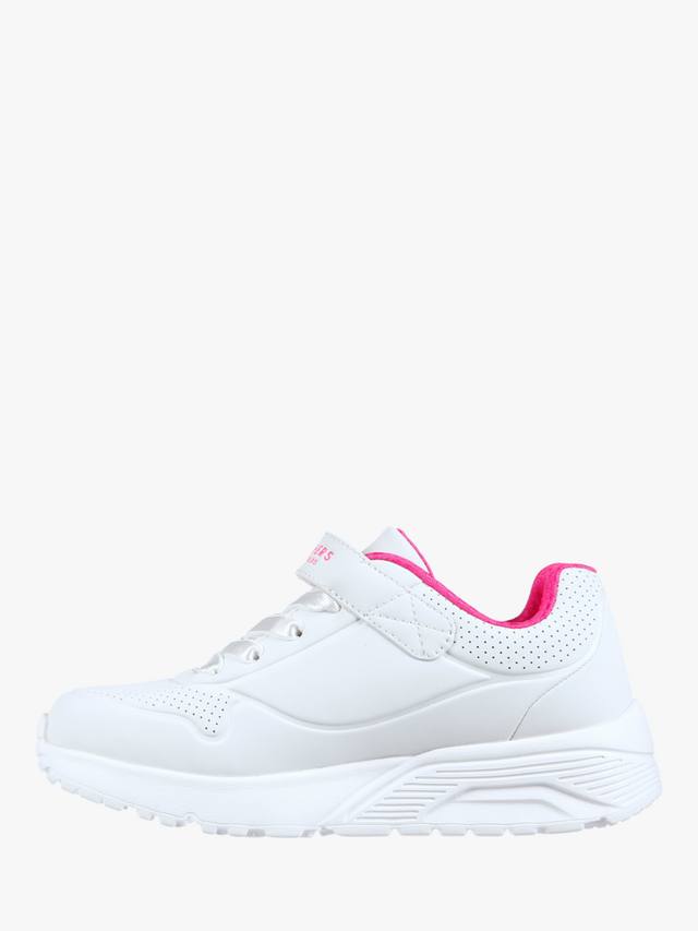 В кроссовках Skechers Street Uno Lite классический спортивный стиль сочетается с комфортом. Эти модные кроссовки, которые можно стирать в стиральной машине, имеют гладкий синтетический верх с эластичными шнурками, регулируемый ремешок на подъеме, стельку из пены с эффектом памяти Skechers Air-Cooled и клиновидную промежуточную подошву.